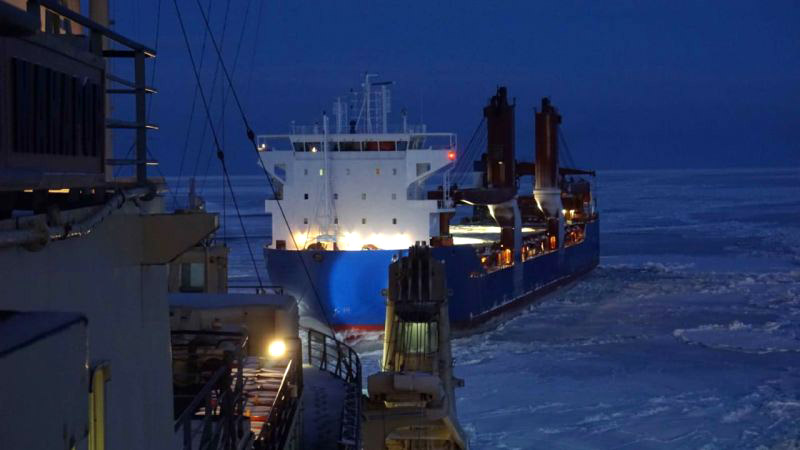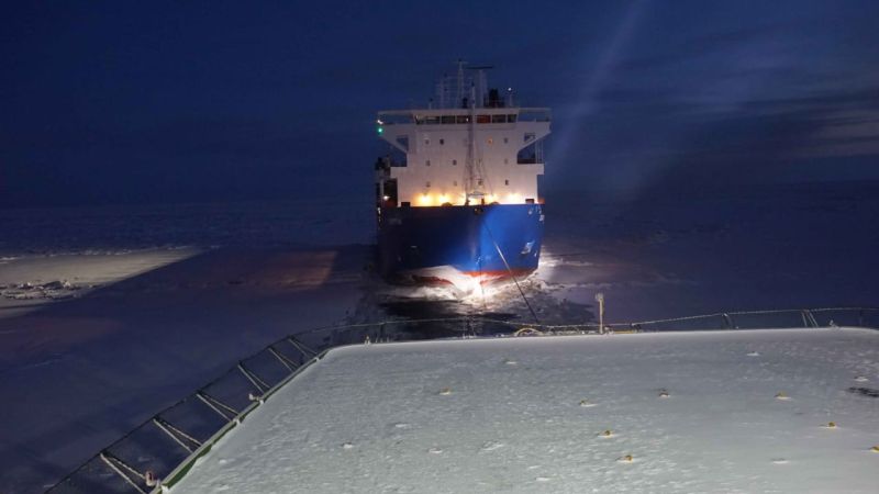 The Admiral Makarov icebreaker carried out a unique towing of the vessel in the ice of the Northern Sea Route