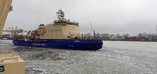 The flagship of FSUE “Rosmorport” fleet, the world's largest and most powerful non-nuclear icebreaker Viktor Chernomyrdin, set out for its first icebreaking operation, namely, providing icebreaker assistance for vessels in the Gulf of Finland. Leaving the Big Port Saint Petersburg, the icebreaker Viktor Chernomyrdin is providing icebreaker assistance for bulk carrier Rodina.