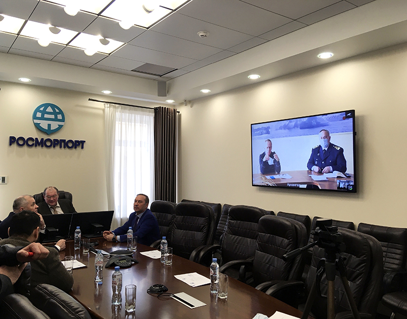 During the demonstration of the capabilities of the situation center, a video conference session was held with the Arkhangelsk Branch of FSUE “Rosmorport” and a conference with the Dixon icebreaker, which is on a trip in the White Sea.