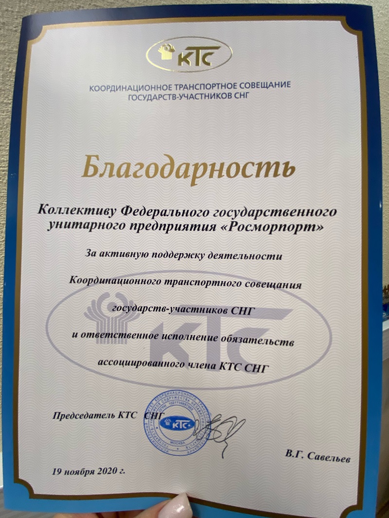 FSUE “Rosmorport” took part in a meeting of the Board of Rosmorrechflot on the results of the work of sea and inland water transport of Russia in 2020. The meeting outlined the tasks of the industry for 2021 and the medium term until 2023. The meeting participants also considered the draft Transport Strategy of the Russian Federation up to 2035. Also FSUE “Rosmorport” team received thanks from the Chairman of the CIS CTM Vitaly Savelyev for active support of the activities of the Coordinating Transport Meeting of the CIS member states and responsible fulfillment of the obligations of the associate member of the CIS CTM.