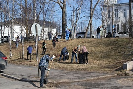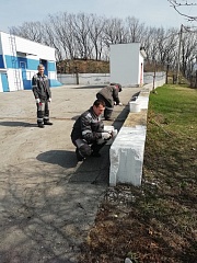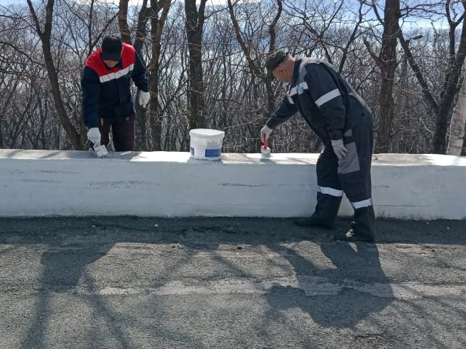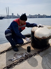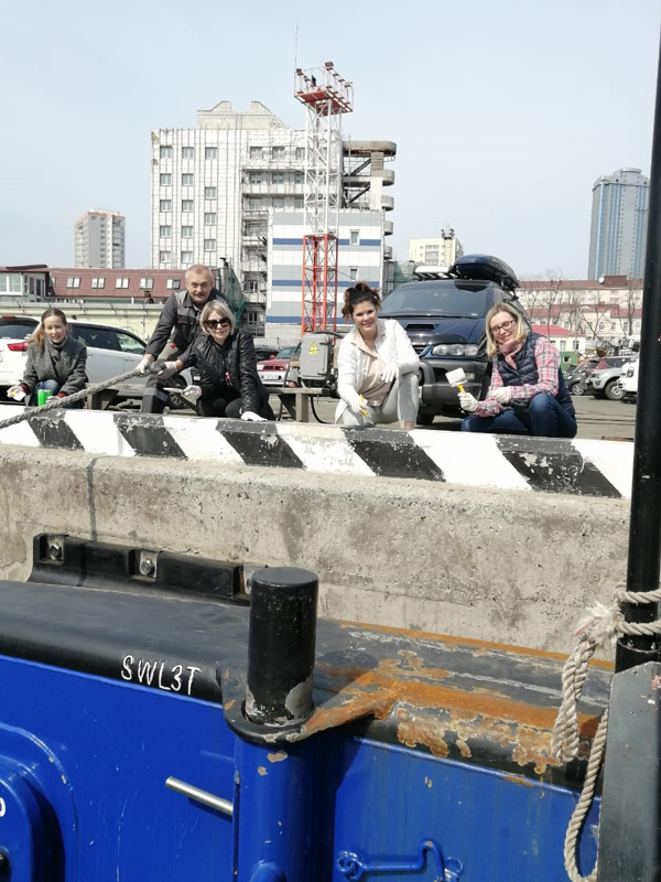 In total, about 15 m3 of large-sized garbage generated during the winter period was removed from all facilities of the Far Eastern Basin Branch. Employees of the branch organized repainting of mooring bollards and wheel stoppers at the berths of the branch in the seaport of Vladivostok, as well as whitewashing of curbs and trees, cutting shrubs and collecting deadwood.