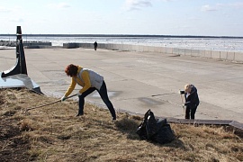 Employees of the Arkhangelsk Branch cleaned the territory on the embankment of the Northern Dvina in the area of location of the memorial sign of FSUE "Rosmorport", opened in honor of the 400th anniversary of the foundation of the pilotage service of Russia.
