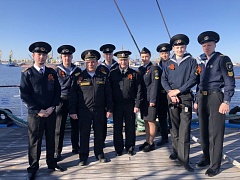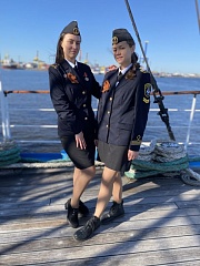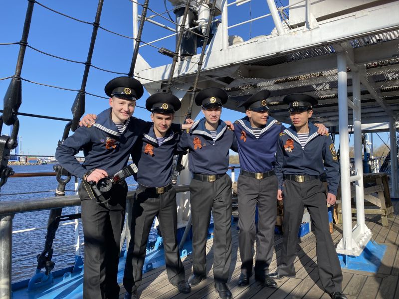 In honor of Victory Day, a formation was organized on the Mir sailing boat. The captain of the ship made a speech about why this holiday is so important and valuable. A minute of silence in tribute to the memory of those who lost their lives during the Great Patriotic War was observed. Then the cadets practicing at the Mir sailing training vessel staged a concert where they read poems about the war and performed the wartime songs.