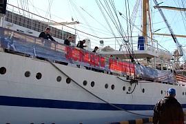 The Khersones sailing training vessel of FSUE "Rosmorport" took part in the "Squadron of Memory" action, which took place on Victory Day in Sevastopol. Sailing yachts led by the Khersones sailing training vessel solemnly came out to sea from the Sevastopol Bay. On the board of each sailing vessel going as a part of the "Immortal water regiment" there was a name of one of the vessels destroyed during the Great Patriotic War – submarines, ships, motor ships, boats.