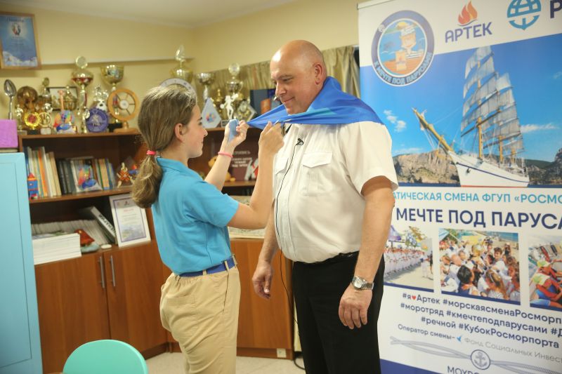 On May 24, Deputy Director for Navigation Safety of the FSUE "Rosmorport" Crimean Branch Nikolay Khamin met with the participants of the thematic program of the enterprise "To the dream under sails" in the children's camp "Rechnoi" of the ICC "Artek".