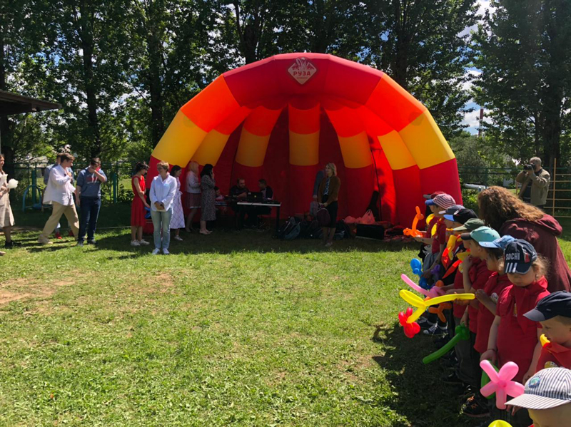 The company's employees gave the children educational gifts and sports equipment: darts, soccer and volleyball balls, petanque sets, a large trampoline, soccer goals, a ping-pong table, backpacks, as well as hand-picked sweet sets and fresh fruit.
