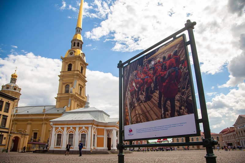 The first photo exhibition of the FSUE "Rosmorport" dedicated to the SAILING THE GLOBE circumnavigation of the sailing boat Mir, which will be held in 2022-2023, was opened on the territory of the Peter and Paul Fortress (Cathedral Square) in St. Petersburg.