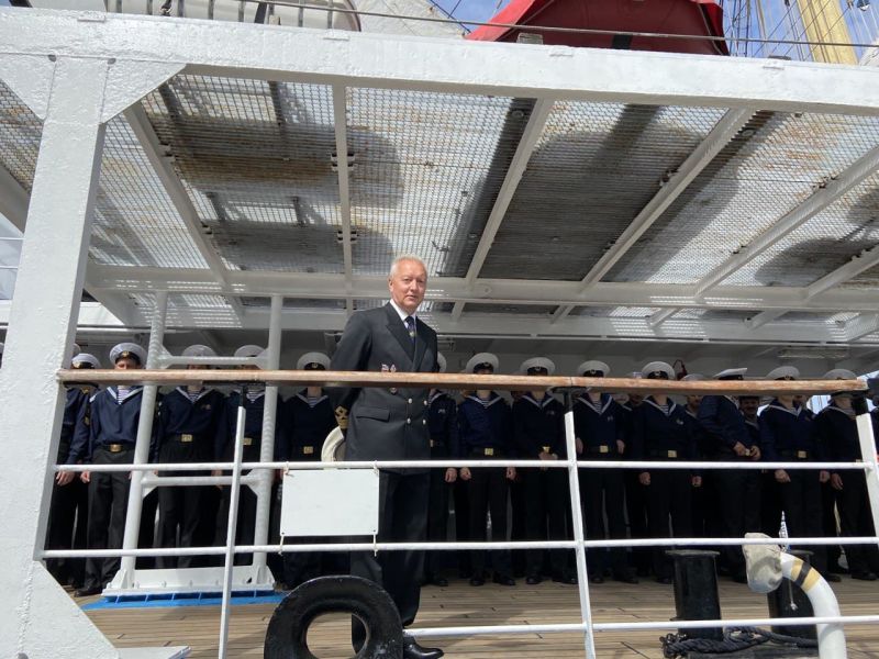 The Minister of Transport of the Russian Federation Vitaly Savelyev visited the sailing training vessel (STV) Mir of FSUE "Rosmorport", which is preparing to set off for an expedition around the world in 2022-2023.