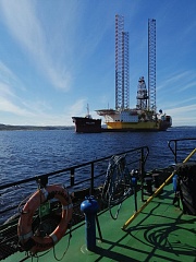 The pilots of FSUE "Rosmorport" carry out a unique operation to unload and tow a self-lifting floating drilling rig in the Kola Bay