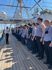 On July 6, FSUE "Rosmorport" accepted new 131 cadets, 12 of whom were girls, from the Marine Academy Institute of the State University of Maritime and Inland Shipping named after Admiral S.O. Makarov and 1 cadet of the SUMIS College on the board of the vessel.