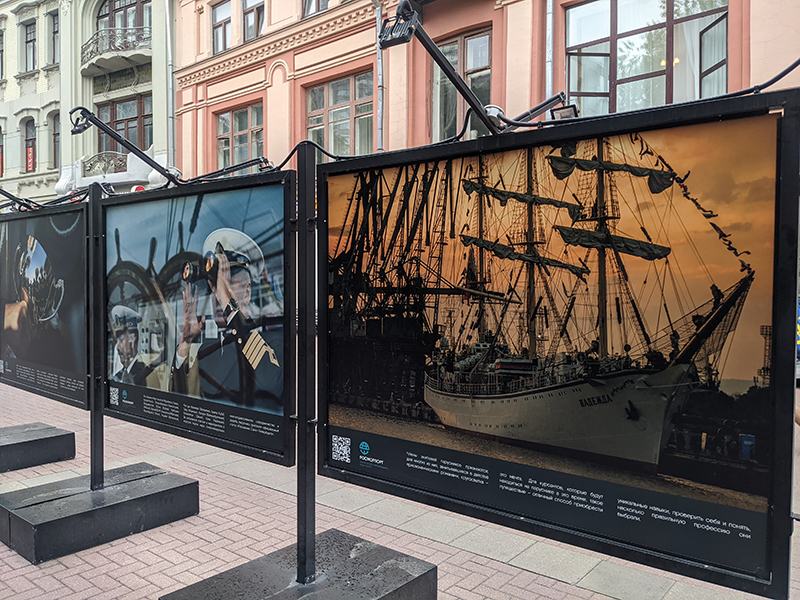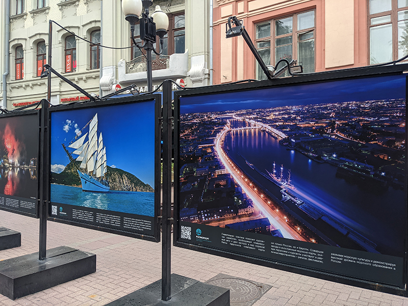 FSUE "Rosmorport" photo exhibition, dedicated to the Day of Marine and River Fleet Workers, opened in Moscow on Arbat Street.