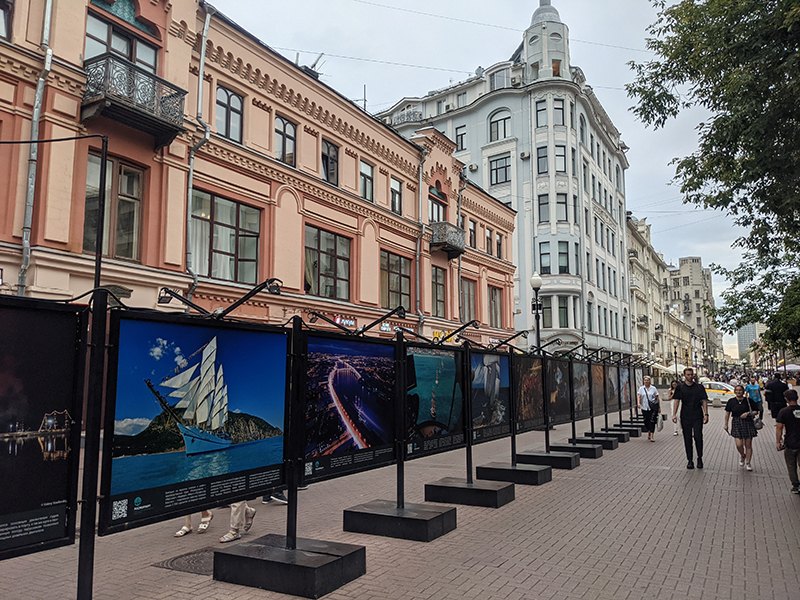 Photo exhibition on Arbat Street in Moscow dedicated to the Day of Marine and River Fleet Workers opened