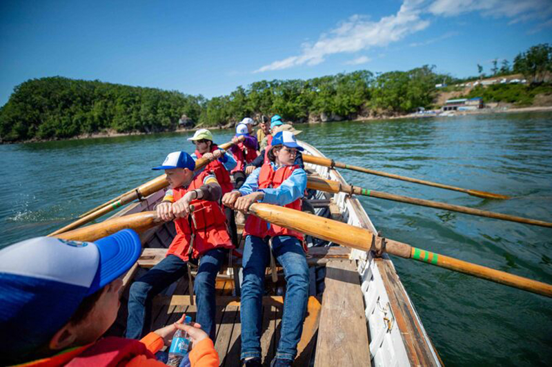 Through search and research activities in the context of the story and role-playing game, the shift participants got acquainted with the history of great geographical discoveries, Russian circumnavigations and iconic sea expeditions. Guided by skilled professionals of the "Okeanskaya Eskadra" squad, the children mastered the rigging and knitting technique of sea knots, got acquainted with sea navigation, learnt how to sail on the rowing and sailing vessel "YaL-6" and on the "Optimist" class dinghy, learnt drill practice, as well as self-organization in unfamiliar situations.