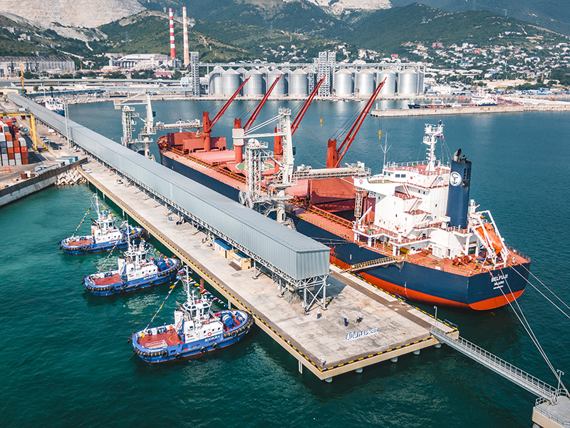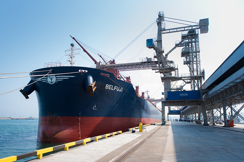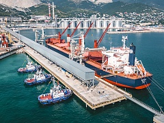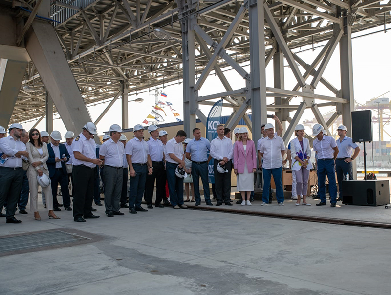 During the solemn event, there was held a symbolic loading with grain of the first vessel moored at the new berth, a bulk carrier Belfuji with a deadweight of 63.5 thousand tons.
