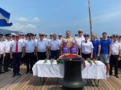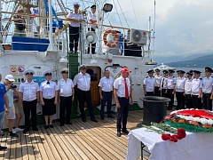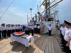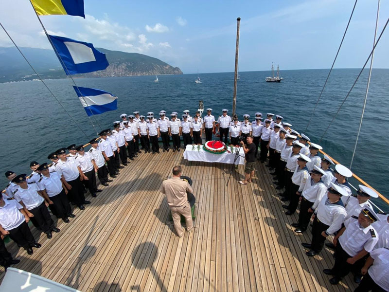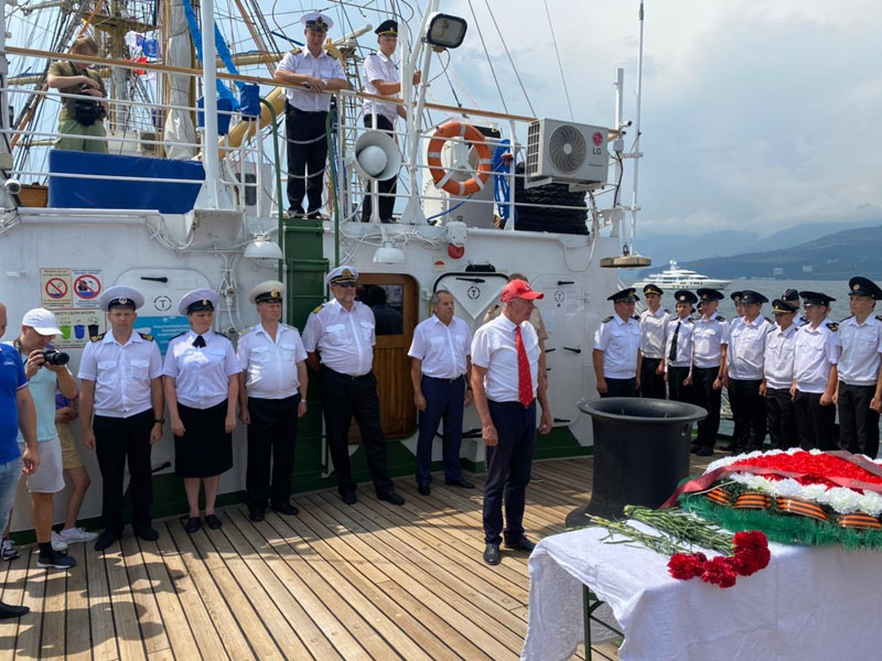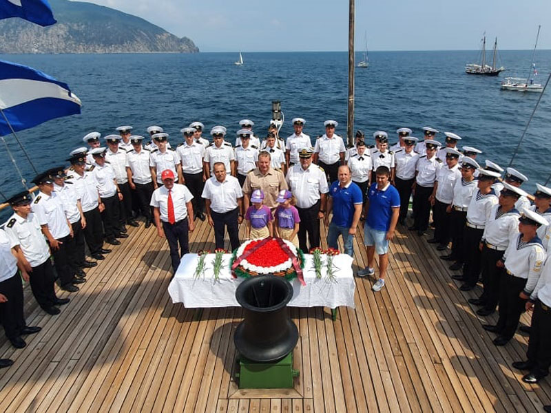 On August 10, the cruise participants held a wreath laying ceremony at the place of shipwreck of the sanitary steamboat Armenia. Andrey Filchakov, director of the FSUE “Rosmorport” Crimean Branch, attended the ceremony. The steamboat Armenia was sunk by German aircraft 18 miles off the coast of Crimea on November 7, 1941. By various estimates, the death toll ranged from 4 500 to 10 000 people. In 2020, the vessel sinking area was discovered by a Russian expedition.