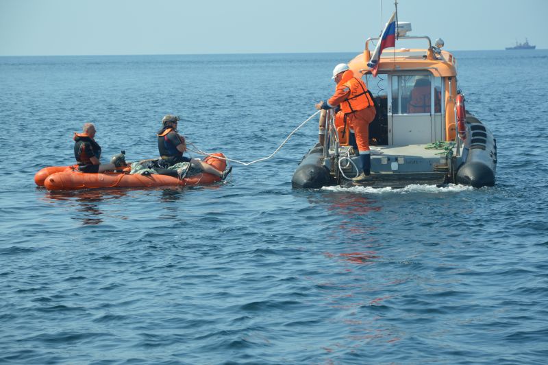 During the exercises, the employees of the Crimean Branch worked out skills of operational search and rescue of people at sea, as well as tactics of interaction with other participants of the rescue operation, including units and vessels of the Main Directorate of the EMERCOM of Russia for the city of Sevastopol, the Black Sea Fleet of the Russian Navy, the Border Department of the Federal Security Service of Russia for the Republic of Crimea, the Azovo-Chernomorsky Branch of the FBI "Marine Rescue Service of Rosmorrechflot", the Southern Interregional Territorial Administration of the Federal Agency for Air Transport.