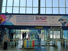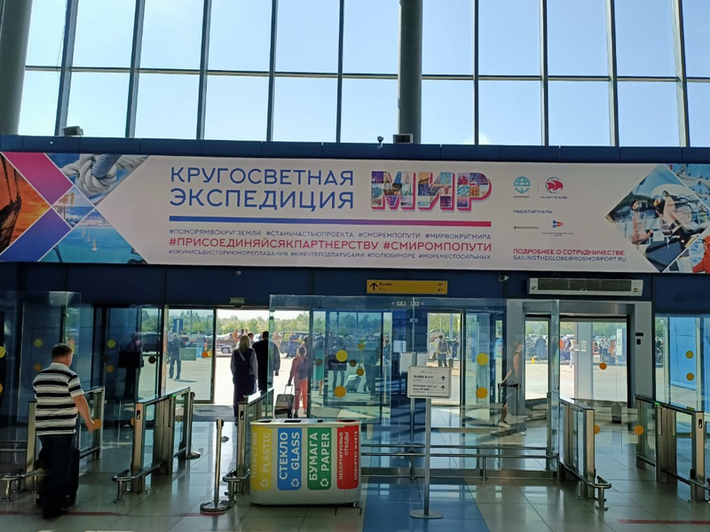 A similar banner presenting the circumnavigation was also posted in the new Far Eastern Maritime Training Center of the Maritime State University named after admiral G.I. Nevelskoy. President of Russia Vladimir Putin and Minister of Transport Vitaly Savelyev visited this center within the framework of the EEF.