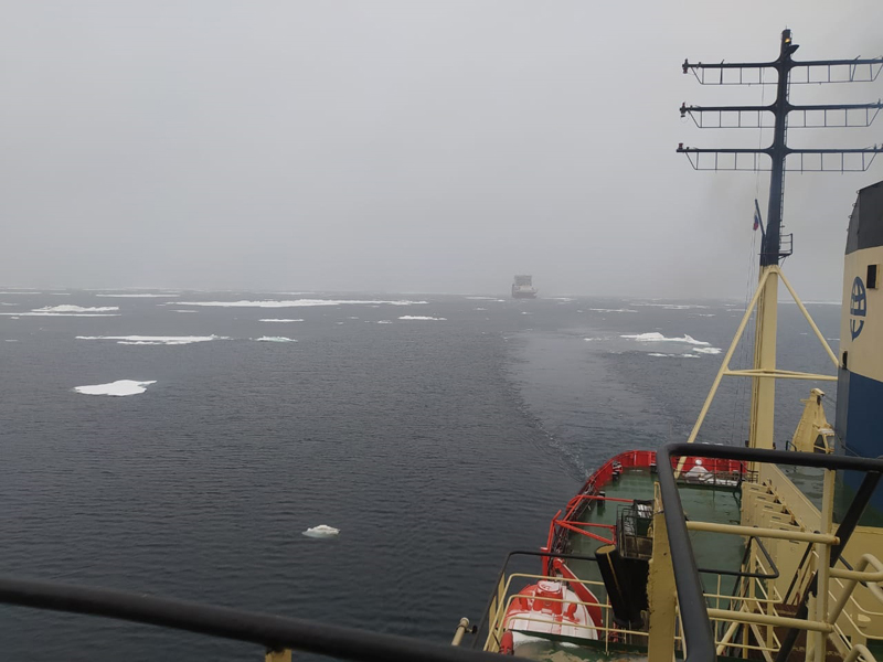 The icebreaker Dixon of the Arkhangelsk Branch of FSUE "Rosmorport" successfully piloted the cargo vessel Blue Marlin through the Long Strait (East Siberian Sea), where the ice cohesion in certain areas was up to 6-7 points.