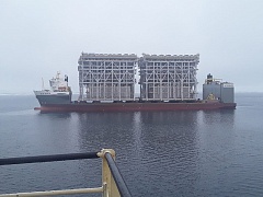 The cargo vessel proceeded in the water area of the Northern Sea Route to the Center for the Construction of large-tonnage offshore structures (Murmansk) with construction modules for the project "Arctic LNG 2".