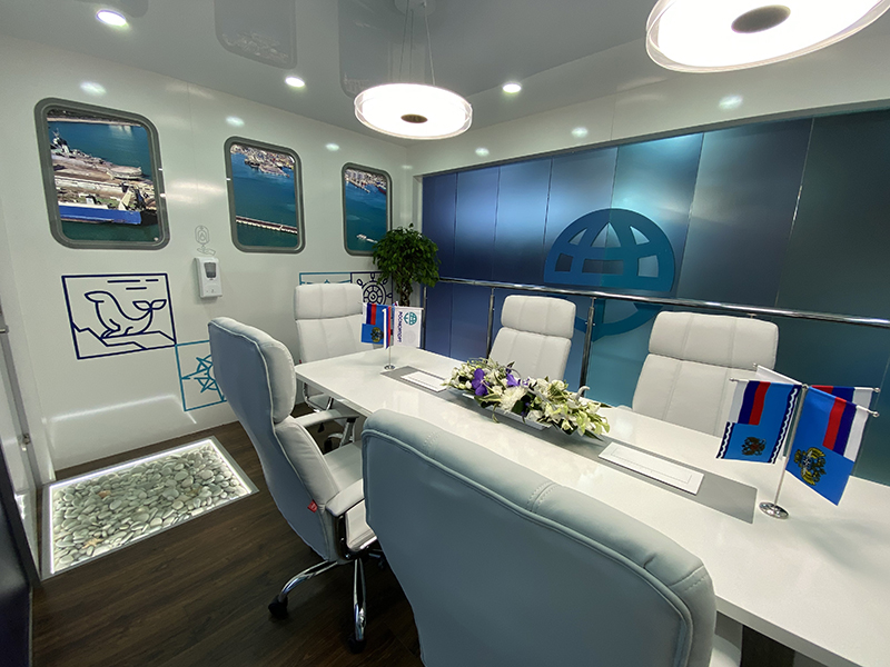 For the exhibition area of national projects of the Ministry of Transport of Russia, FSUE "Rosmorport" has prepared a virtual 3D tour to walk aboard the flagship of the enterprise's fleet – the world's largest and most powerful diesel-electric multifunctional icebreaker Viktor Chernomyrdin. For more detailed research of advanced achievements of the Russian fleet by participants and guests of the exhibition, FSUE "Rosmorport" presented models of eco-friendly projects on liquefied natural gas - an icebreaker of 12-14 MW and a ferry Marshal Rokossovsky - at the joint exposition of the Ministry of Transport of Russia.