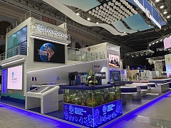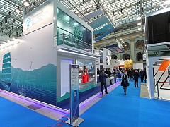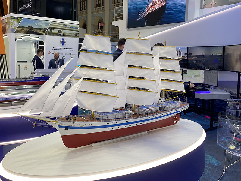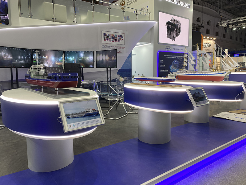 Using the possibilities of the exhibition space, the enterprise presented a model of the Onego Shipyard modernization and models of the Marshal Rokossovsky ferry and the Rabochaya self-propelling dredging barge, the latter being a place for testing of autonomous navigation, and the world's fastest sailing training boat Mir.