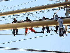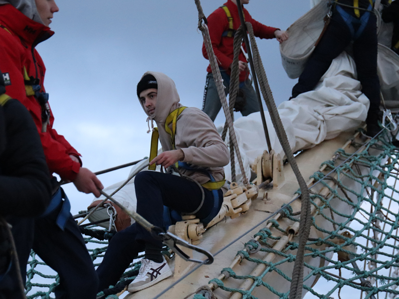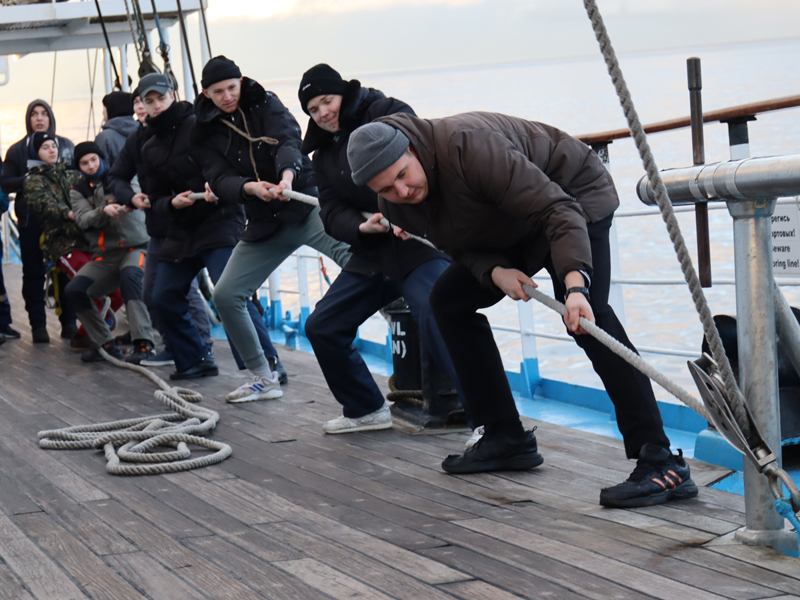 The last, third, shift included 108 cadets of the Marine Academy of the Admiral Makarov State University of Maritime and Inland Shipping and the Voronin Arctic Maritime Institute (a branch of Admiral Makarov State University of Maritime and Inland Shipping).  The cadets applied theoretical skills in practice in the Baltic Sea, where they kept watch on the rudder, worked with masts and sails, and performed deck work.