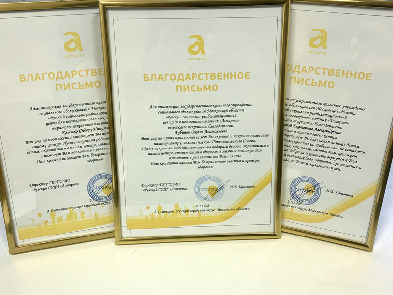 For 9 years of cooperation with the Astarta Center, more than 200 children from 3 to 16 years old have taken part in charity events organized by FSUE “Rosmorport”. During this period, computers, household, organizational equipment and teaching aids have been purchased with the financial support of the enterprise, and the territory of the institution has been improved.