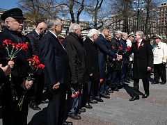 On May 5, 2022, on the eve of the 77th anniversary of Victory in the Great Patriotic War representatives of the Ministry of Transport of Russia and its subordinate structures, including FSUE “Rosmorport”, took part in a wreath-laying ceremony in the Alexander Gardens.