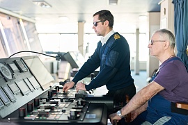 A working meeting of FSUE “Rosmorport” representatives with specialists from AARI, KSRC, Admiralty Shipyards OJSC, Aurora NGO on the program and methodology of ice tests was held beforehand on the vessel.