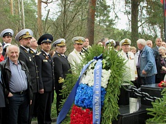 After the wreath-laying ceremony, Deputy Head of the Federal Agency for Maritime and River Transport Konstantin Anisimov, Chairman of the Council of Veterans of the Navy Yuri Mikhailov, Deputy General Director of FSUE “Rosmorport” Sergey Simonov delivered solemn speeches.