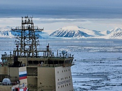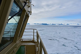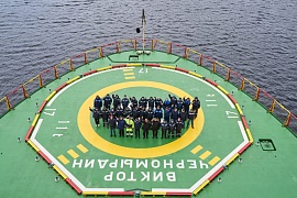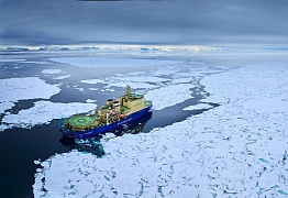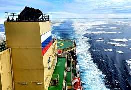 Upon leaving the ice fields, the Viktor Chernomyrdin icebreaker successfully completed a maneuvering element - a turn in clear water using azipods.