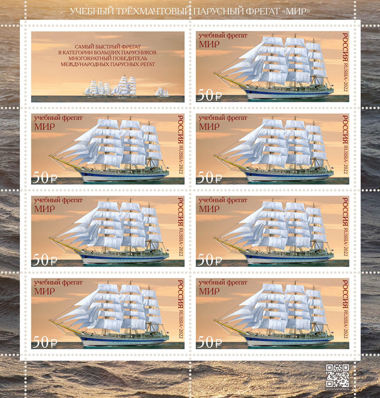 The stamp dedicated to the sailing training vessel Mir of FSUE "Rosmorport" went into postal circulation on July 1, on the eve of the Day of the marine and river fleet workers.