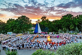 On the eve of the celebration of the "Orlyonok's" birthday, the FSUE “Rosmorport” traditionally provided for the setting up of Khersones sailing ship near the "Shtormovoy" children's camp. The legendary three-masted vessel under scarlet sails stayed in the water area of the children's center until the end of the camp. During this time, the children had a chance to see the frigate from a close distance, greet the crew and take memorable photos as part of sea sightseeing excursions on boats.