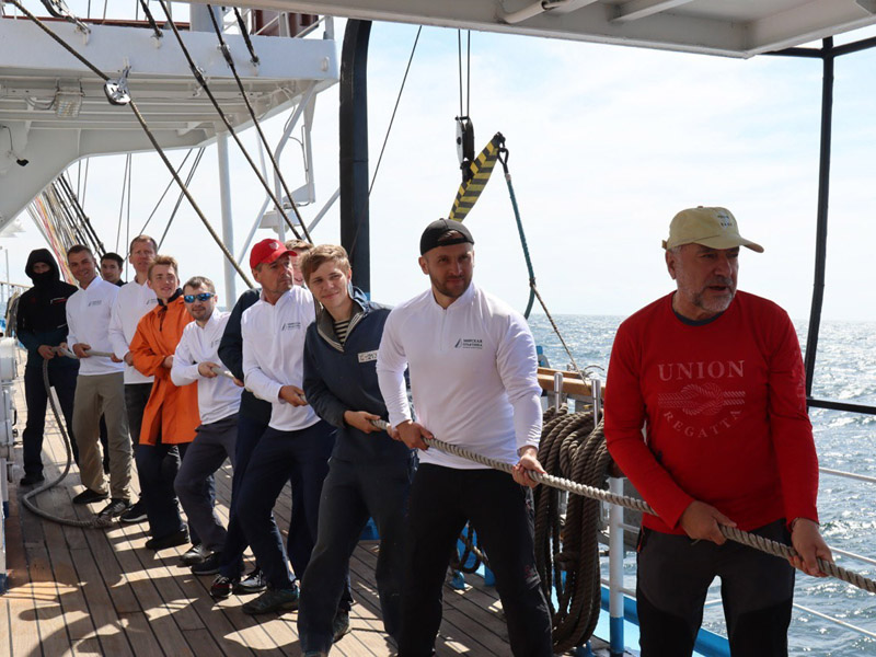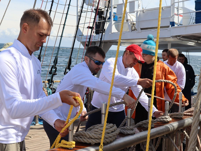 This season, until the end of October, 11 weekly voyages from St. Petersburg to Kaliningrad and back are planned on the frigate as part of the project. In the expedition on the sailing boat, each participant will have the opportunity to practice under the guidance of an experienced boatswain, take part in sailing adventures and climb the mast, learn how to work with sails, keep watch at the helm, and learn the basics of navigation and astronomical navigation.