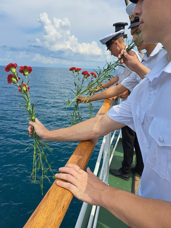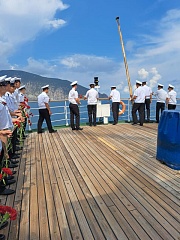 A mourning ceremony was held on the sailboat, which ended with a minute's silence in memory of the fallen. A wreath and flowers were set afloat from the vessel.