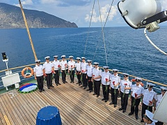 At the youth historical patriotic yachting cruise “Black Sea Memory Sails”, the Khersones training sailing boat took part in a solemn ceremony dedicated to the memory of the crew members and passengers of the Armenia hospital vessel that wrecked during World War II.
