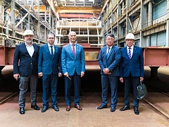A solemn ceremony of keel laying of the non-propelled dredger Nikolay Rusanov took place in Astrakhan, attended by Oleg Knyazev, Chairman of the Government of the Astrakhan Region, and Ilya Volynsky, Minister of Industry and Natural Resources of the Astrakhan Region. The vessel is being built for the FSUE “Rosmorport” Astrakhan Branch.