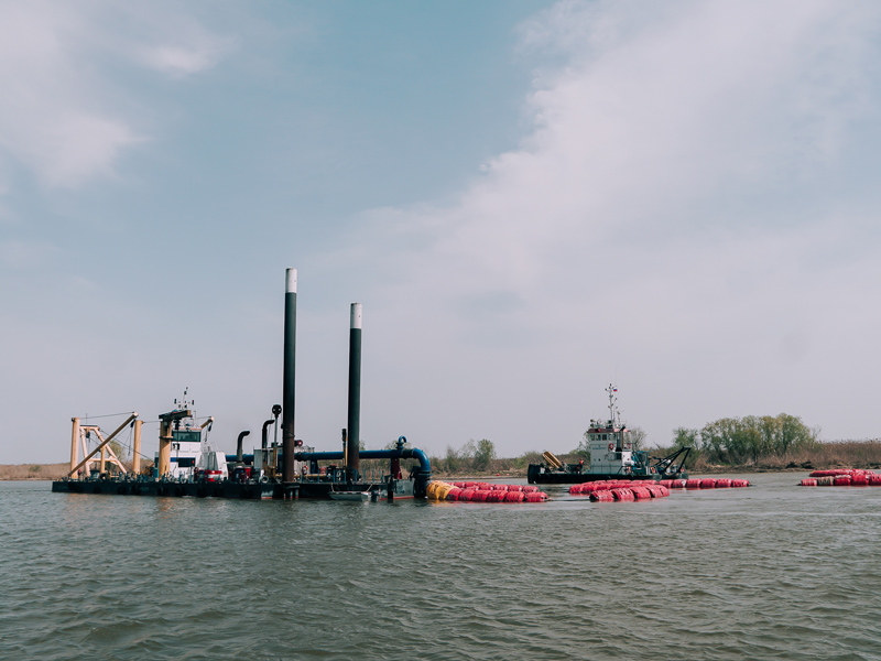 Heads of Rosmorrechflot and FSUE “Rosmorport” inspect dredging works at the Volga-Caspian Sea Shipping Canal