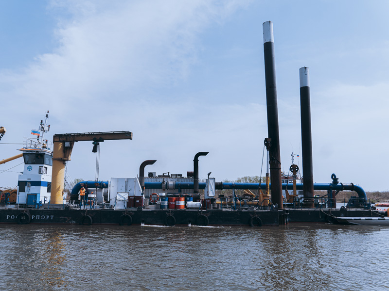 Work at the strategically important facility is carried out around the clock under favorable weather conditions. In order to fulfill the task set by President of the Russian Federation Vladimir Putin on ensuring the passage of vessels with a draft of at least 4.5 m along the VCSSC by the end of 2023, FSUE “Rosmorport” provides the fleet involved in the development of the VCSSC with all the necessary related materials and equipment for its smooth operation.