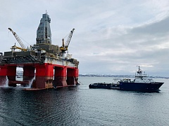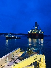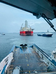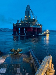 Pilots of the Murmansk Branch provide pilotage assistance for a floating drilling rig in the Kola Bay