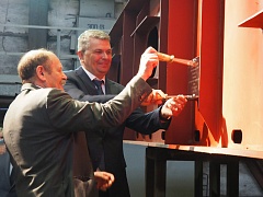 On May 12, a solemn ceremony of laying the keel of a brand-new shallow-draft icebreaker of 22740M project was held at the Onega Shipyard in Petrozavodsk. This is the first icebreaker to be built at the Onega Shipyard.