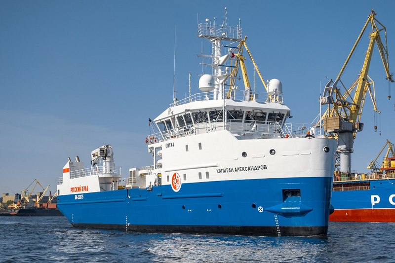 The Kapitan Aleksandrov crab-fishing boat is the lead vessel in a series of vessels designed for the harvesting and transportation of live crab. It was laid down at the Onega Shipyard in June 2020 and launched in January 2022. The order for the construction of the series has been implemented under an investment quota program aimed at renewing the national fishing fleet and increasing the efficiency of the development of valuable national bioresources.