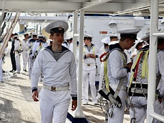 The Mir sailboat takes part in the Main Naval Parade in Russia