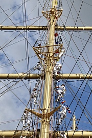On July 30, the sailing training boat Mir of FSUE “Rosmorport” for the first time in its history took part in the Russian main naval parade in St. Petersburg, dedicated to the celebration of the Navy Day. President of the Russian Federation Vladimir Putin took the parade.