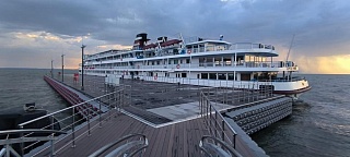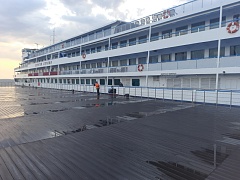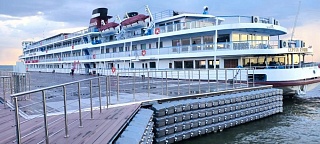 Another passenger vessel moors to the new floating berth in the seaport of Taganrog