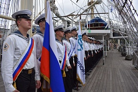 On September 10, the Nadezhda sailing training vessel took part in a large Parade of Sails event at the 8th Eastern Economic Forum. The parade was held in the water area of the Amur Bay, the seaport of Vladivostok. The vessel also accompanied sailing races timed to coincide with the largest business event of the Far East – a children's and youth regatta and a regatta of cruising yachts of different classes.