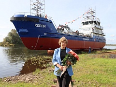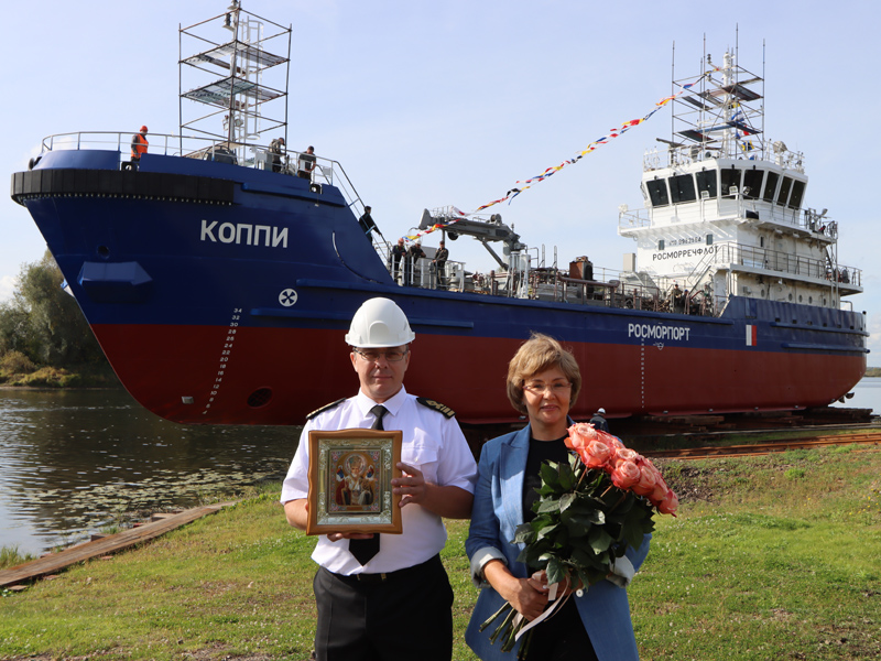 FSUE “Rosmorport” was represented at the ceremony of setting afloat Koppi BWR by Vasily Strugov, Deputy General Director for Fleet, Elena Bulanova, Director of the North-Eastern Basin Branch, who became the godmother of the vessel, the shipyard was represented by Denis Samsikov, General Director. Representatives of Ingosstrakh Joint Venture also participated in the event.