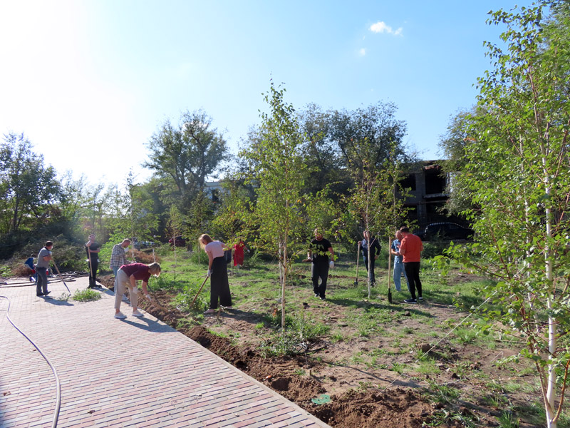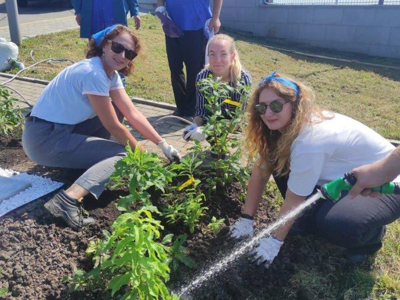 The employees of the branches participated in the planting of trees and shrubs in memory of those who died during the Great Patriotic War of 1941-1945, as well as in the improvement of branch facilities and sanitary cleaning of adjacent territories.