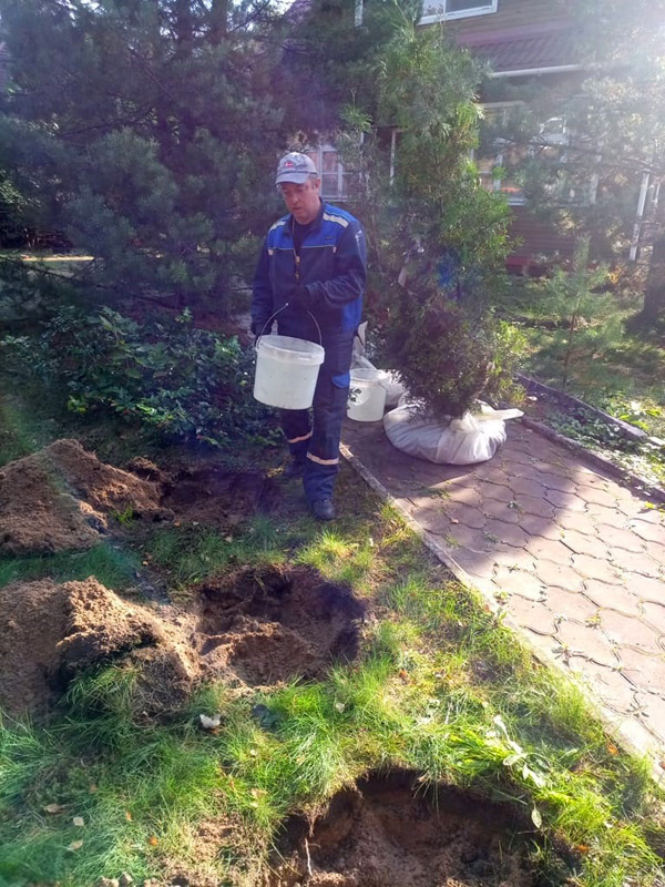 The North-Western Basin Branch held events in all three of its departments. Thus, in the Kaliningrad Department, the planting of seedlings took place at two facilities. 6 pine seedlings, 4 thuja and 10 boxwood bushes were planted on the territory of radar post No. 1 on the Baltic Spit. 6 pines and 4 firs were planted on the territory of the receiving radar center in the village of Bolshoe Isakovo. Employees of the Vyborg-Vysotsk Department planted 3 thuja in the area of the pilotage station in Vysotsk, Vyborg district, Leningrad Region. The staff of the Ust-Luga Department of the branch planted an alley of 7 oak trees on the territory of the automobile and railway ferry complex in the seaport of Ust-Luga. A memorial plaque dedicated to the victims of the Great Patriotic War was also made and installed at the place of tree planting.