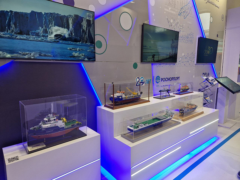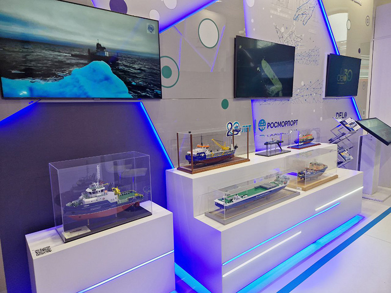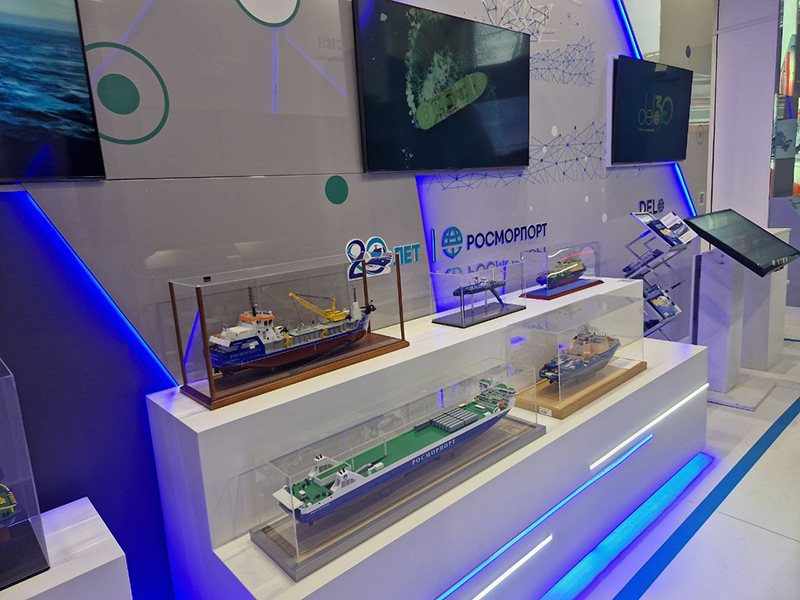 FSUE “Rosmorport” presented a model of the world's largest and most powerful diesel-electric icebreaker Viktor Chernomyrdin of project 22600, icebreakers of the advanced domestic project 21900M Vladivostok, Murmansk and Novorossiysk, the innovative dual-fuel ferry of project CNF19M Marshal Rokossovsky, the self-dumping dredger Kronshlot, which is a part of the country's largest group of dredging vessels of FSUE “Rosmorport”, involved in ambitious work at the Volga-Caspian Sea Shipping Canal, at the exposition “Maritime and Inland Water Transport”. Visitors will also be able to watch videos about the operation of the enterprise's vessels.